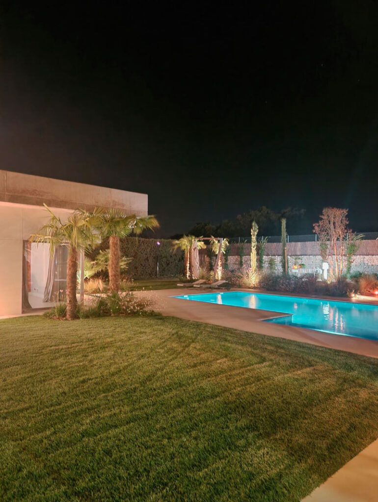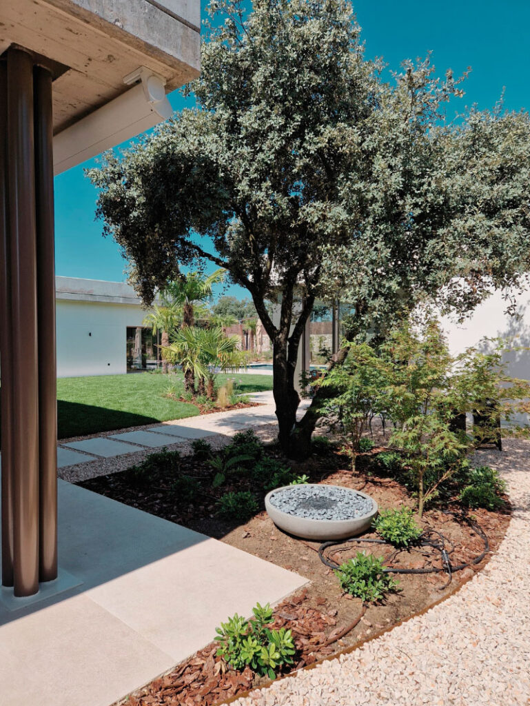 El diseño de este jardín a las afueras de Madrid comienza con la creación de una entrada majestuosa, con cipreses que acompañan la escalinata elevando la mirada hacia el interior.