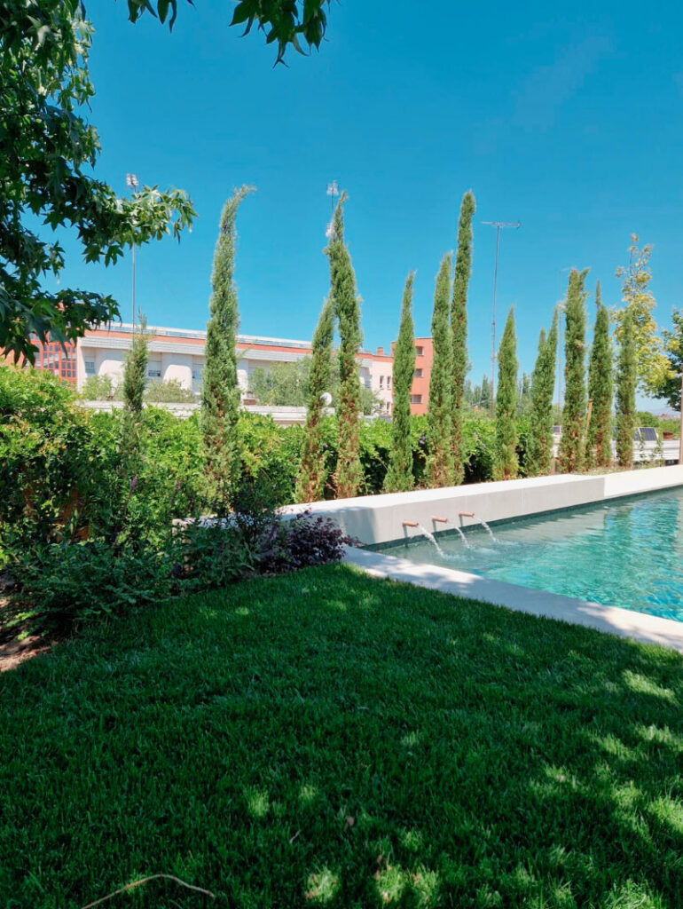 El diseño prioriza la sostenibilidad, utilizando plantas resistentes al clima extremo de Madrid y un sistema de riego eficiente. Creando así un refugio natural y relajante único en plena ciudad.